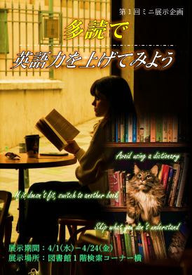 4月1日(水)より、第1回ミニ展示「多読で英語力を上げてみよう」を実施しております。